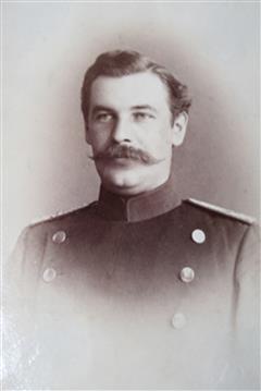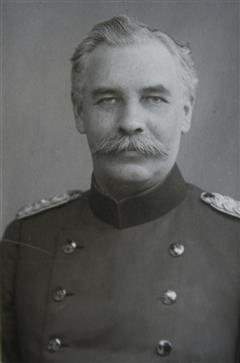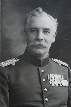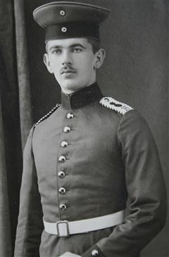 Königlich preußischer Major, später Bezirks-Kommandeur in Wehlau/Ostpreußen; schließlich außer Diensten in Königsberg in Preußen (wohnte dort 1908: Nachtigallensteig 13) und zuletzt in Berlin; Träger u.a. des Roten-Adlerordens (oben auf dem Bild links).
