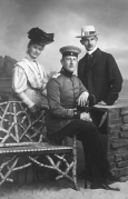 Die Familie um (Ehefrau 1) Charlotte Margarethe Helene Mueller-West mit dem 1. Ehemann Heinrich Stolte und 2. Ehemann Egon von Pirch.