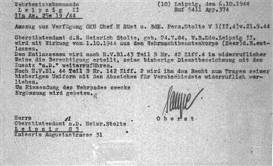 Es sollte noch erwäht werden, dass Heinrich Stolte weder im 1. noch im 2. Weltkrieg seine Waffe auf Menschen richten musste. Dies brachte ihm Gott sei Dank seinen Einsatzt in den verschiedenen Intendanturen mit. Die Intendantur war eine militärische Verwaltungsbehörde, die die Truppe in allen materiellen Bedürfnissen (außer Waffen und Munition) zu versorgen hatte. Das heißt, er war "nur" als militärischer Verwaltungsbeamter tätig, trotz ständiger Beobachtung der N.S.D.A.P. Das schloß aber nicht aus, dass Beförderungen und Auszeichnungen, wie überall in der Wehrmacht, eine große Bedeutung hatten.