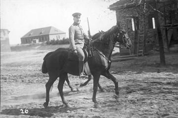 Der Kriegsakademie-Kursus, an den sich noch eine Generalstabsreise und weiterhin die praktische Ausbildung bei der Militärintendantur des I. Armeekorps in Königsberg anschließen sollte, wurde durch den Ausbruch des Weltkrieges plötzlich beendet. Ich mußte, da ich mich lt. Kriegsbeorderung schon am l. Mobilmachungstage, also am 2.8.1914 beim Regiment zu melden hatte, Hals über Kopf nach Königsberg zurückfahren und wurde hier zum Adjutanten des vom Regiment aufzustellenden Stabes der Artillerie-Munitionskolonnenabteilung 36 des I. Res.Korps bestimmt. Innerhalb von 6 Tagen hatte ich an Hand des Mobilmachungsterminkalenders die Zusammenstellung und Ausrüstung des Stabes mit Mannschaften, Pferden, Fahrzeugen, Waffen, Geräten, Dienstvorschriften pp. durchzuführen und am 8.8.1914 ging es ins Feld. Wir wurden zunächst in die Gegend von Nordenburg abbefördert, wo allmählich auch die uns unterstellten Munitionskolonnen eintrafen und in unsere Obhut genommen wurden. Ich hatte hier noch eine Woche Zeit, mich in die Praxis meiner Adjutantentätigkeit einzugewöhnen, dann erhielt