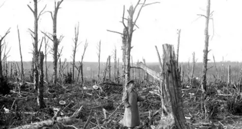 Ansicht in einem Schlachtfeld in Frankreich. Überall totale Zerstörung. Nichts war mehr so, wie es vorher war.