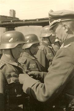 1942 bei dem Morgenapell werden seine Soldaten von HK ausgezeichnet