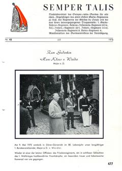 Aus diesem alten Regiment gingen später verschiedene Truppenteile, wie auch das Wachbataillon des Bundesministers der Verteidigung, hervor. Dieses Wachbataillion hielt auch später bei seiner Trauerfeier die Totenwache