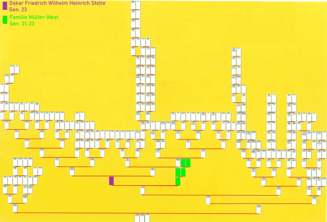 - Hier enden die Aufzeichnungen des Oskar Friedrich Wilhelm Heinrich Stolte, der am 23.2. 1952 in Berlin-Tegel mit 77 Jahren verstarb. Es ist anzunehmen, dass die fehlenden Seiten seiner pers. Aufzeichnungen verloren gegangen sind. Heinrich Stolte lebte nach seiner Leipziger Zelt mit seiner 2. Ehefrau Liselotte Charlotte. geb. Bork in West-Berlin. Zahringer Straße 24a und wurde dort pensioniert.